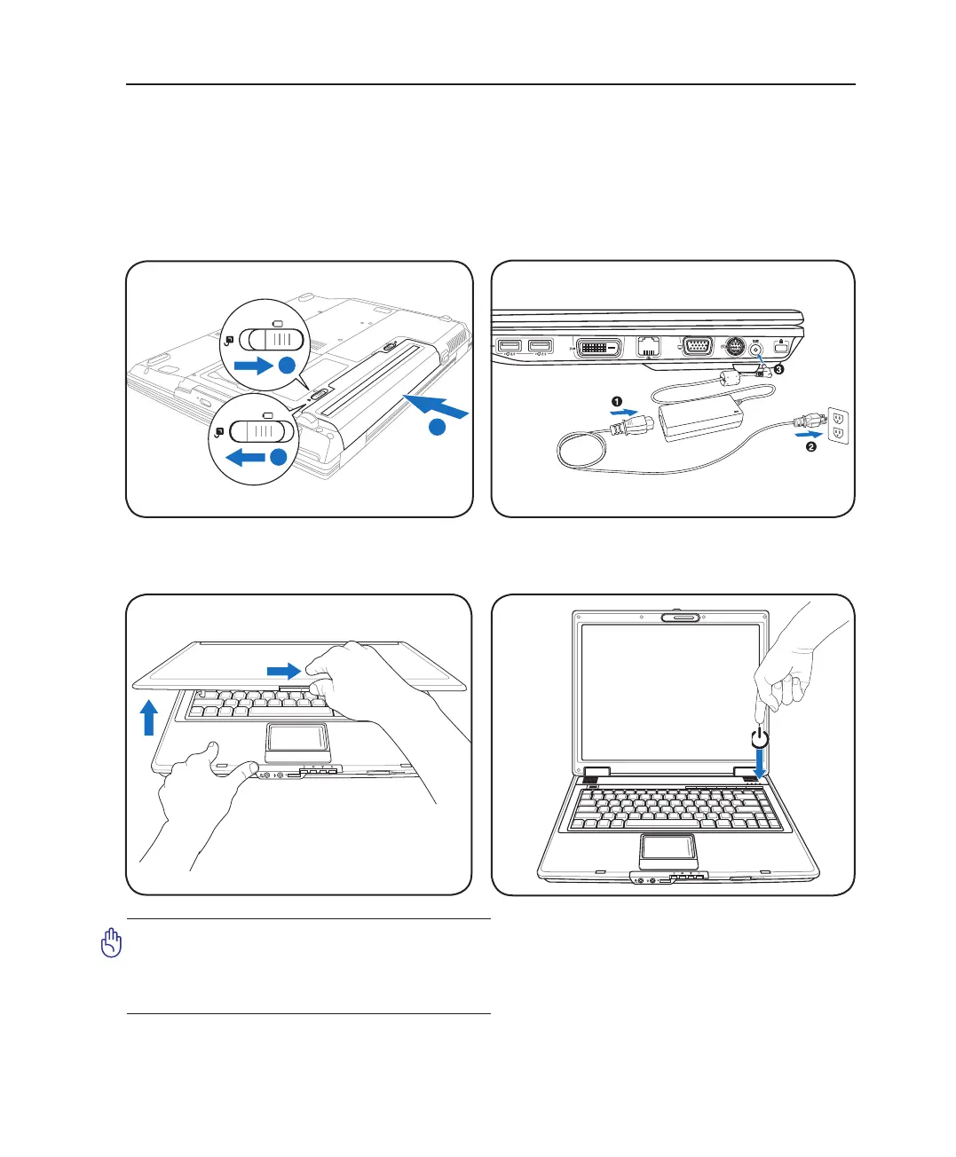 3. Open the Display Panel 4. Turn ON the Notebook PC