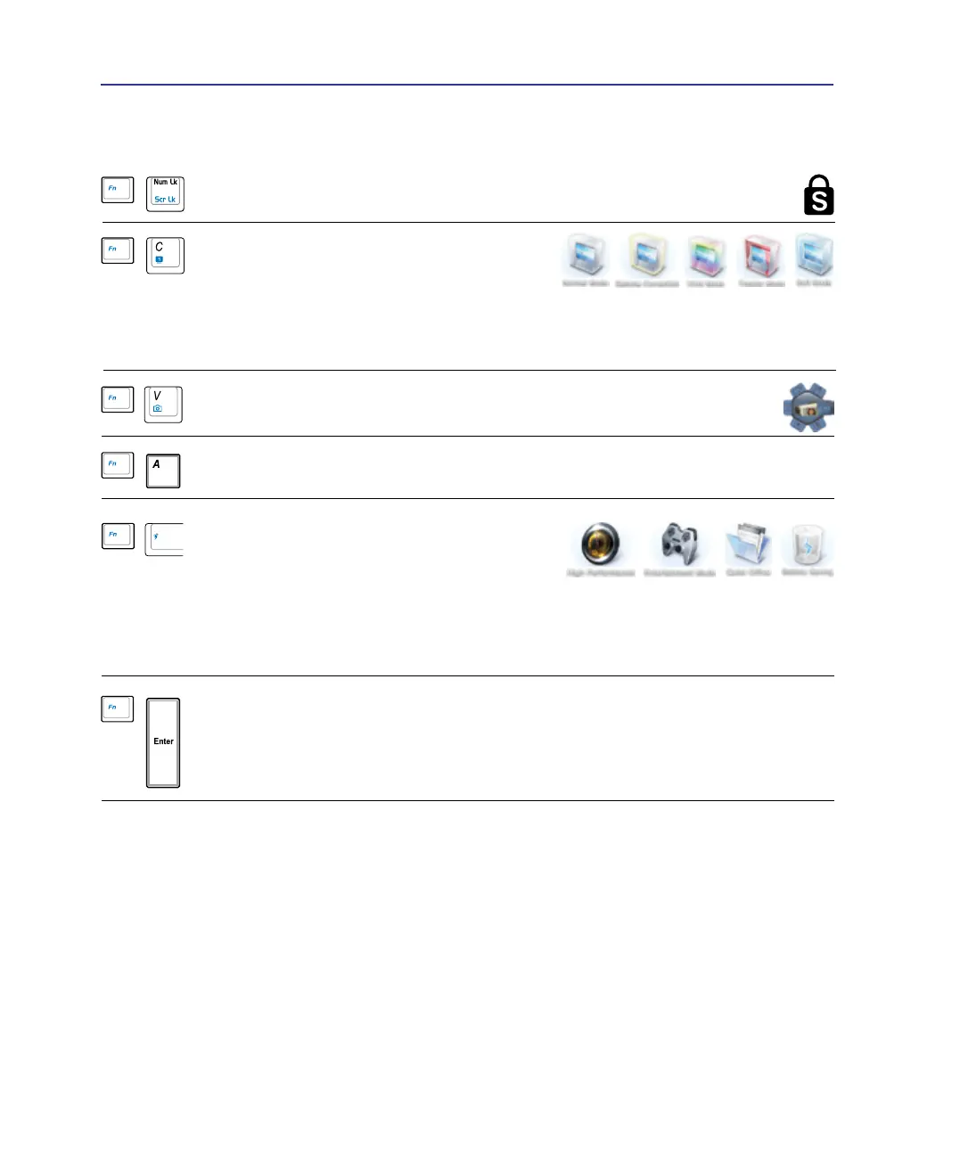 Fn+A: Toggles the Light Sensor ON or OFF.