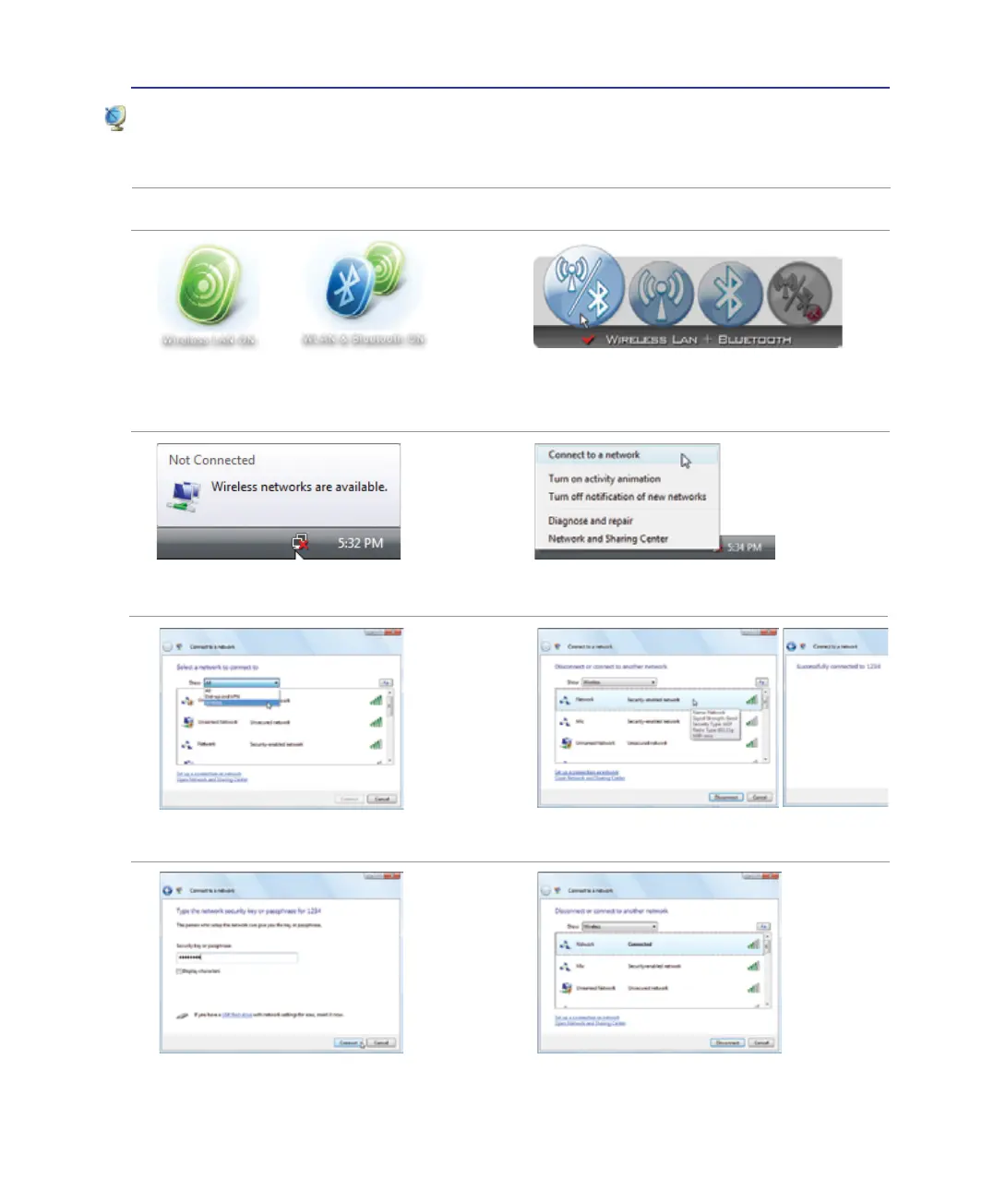 the taskbar and select either the Wireless LAN