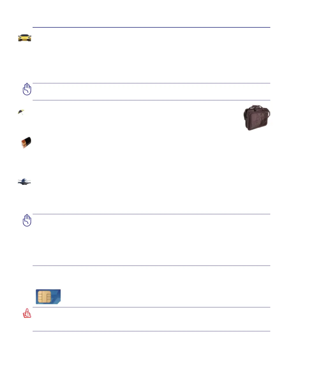 not transport the Notebook PC while the power is still ON. Close the display panel and check that it is