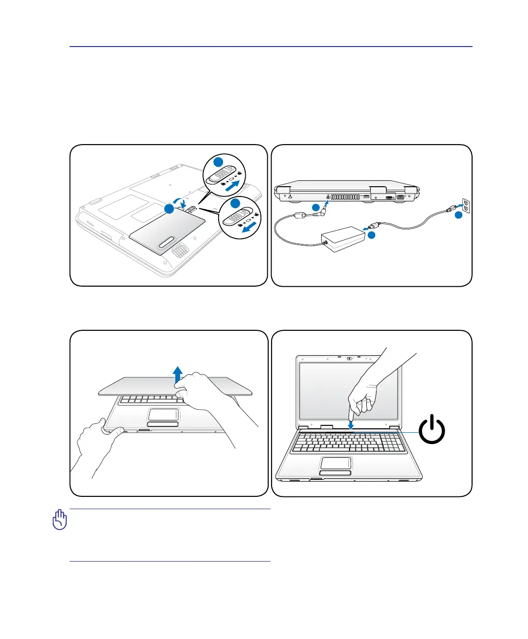 3. Open the Display Panel 4. Turn ON the Notebook PC