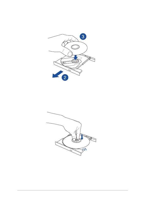 4. Push down the disc’s plastic hub until it snaps onto the optical