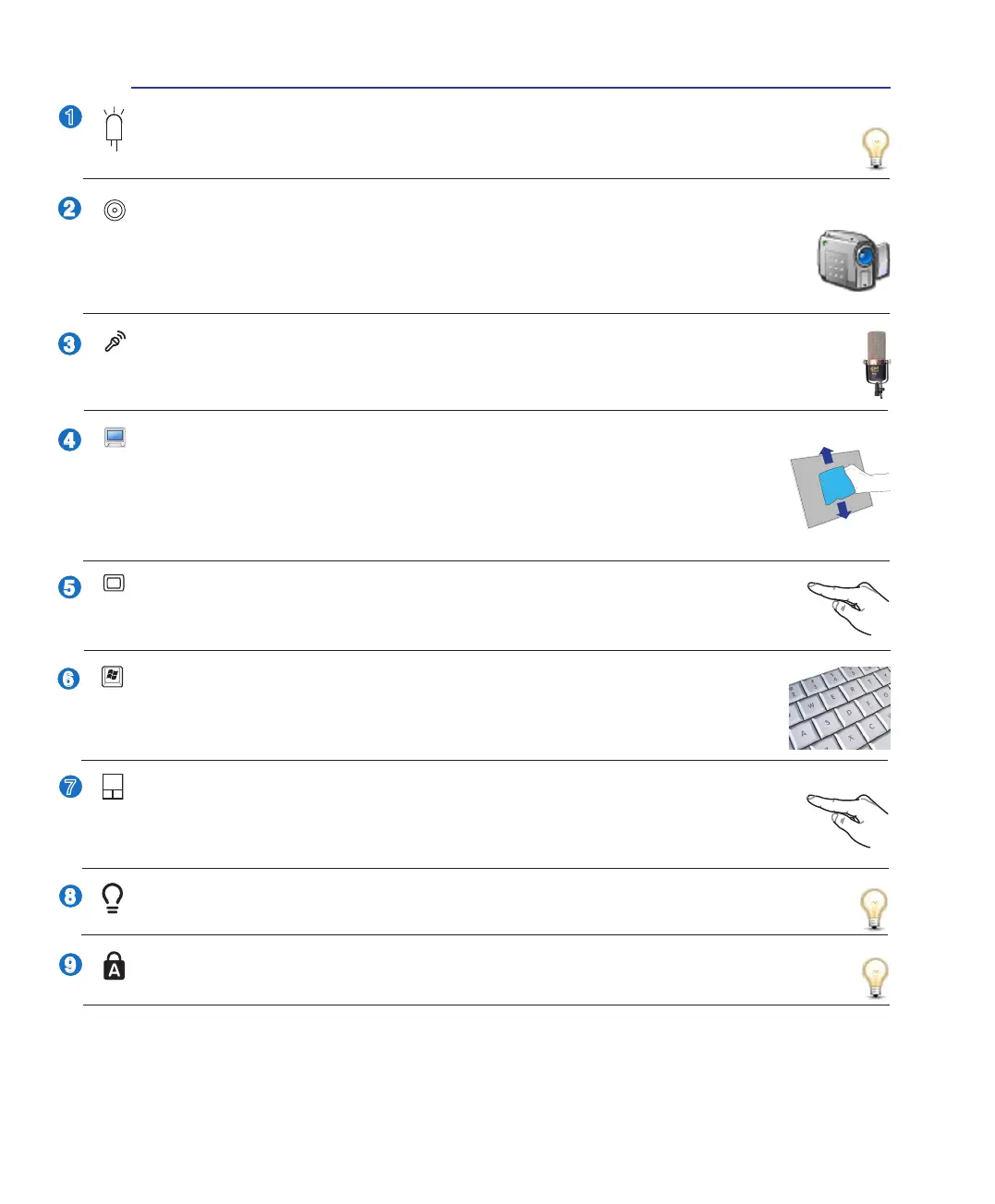 The camera indicator shows when the built-in camera is in use. The camera may be auto-activated