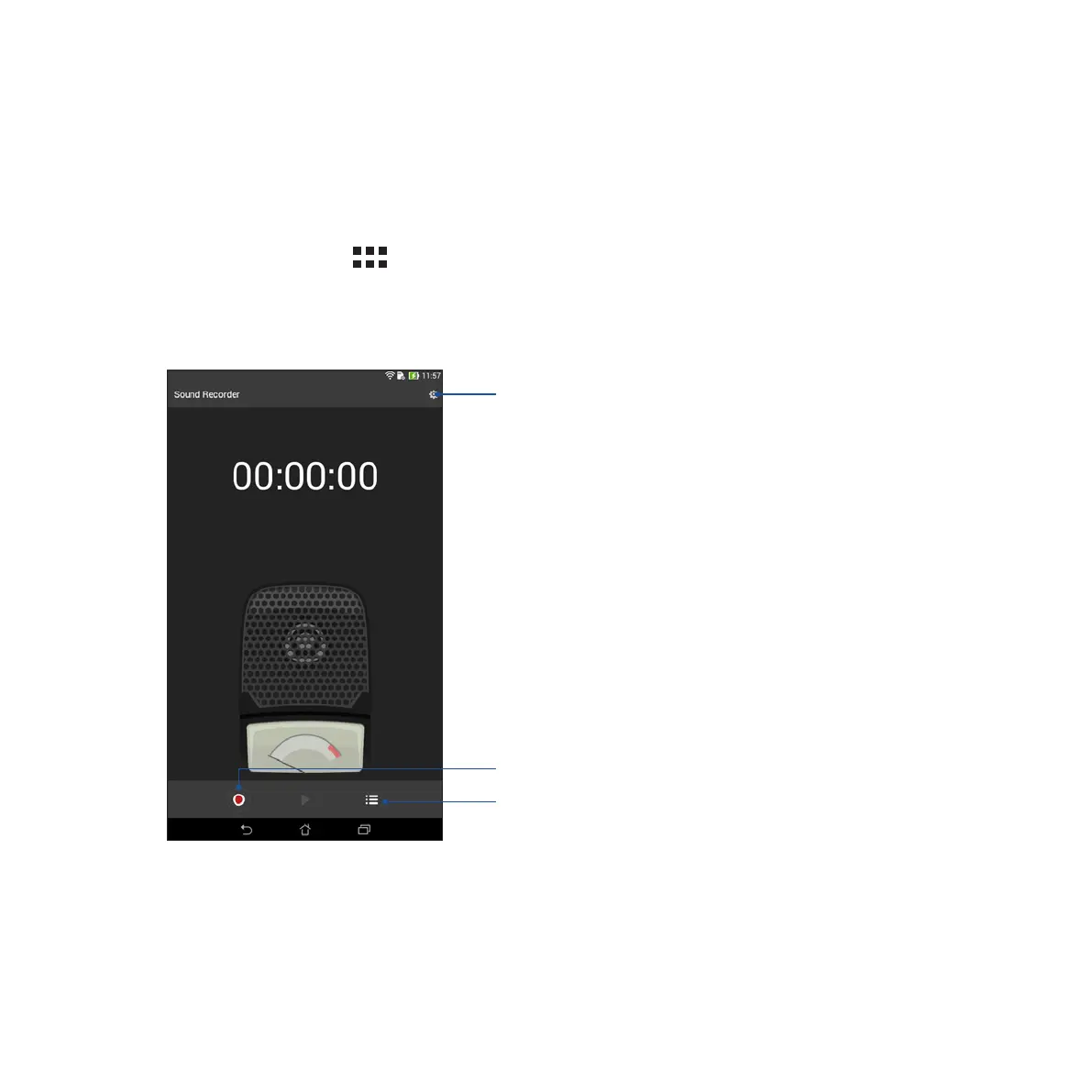 To launch Sound Record, tap > Sound Recorder.