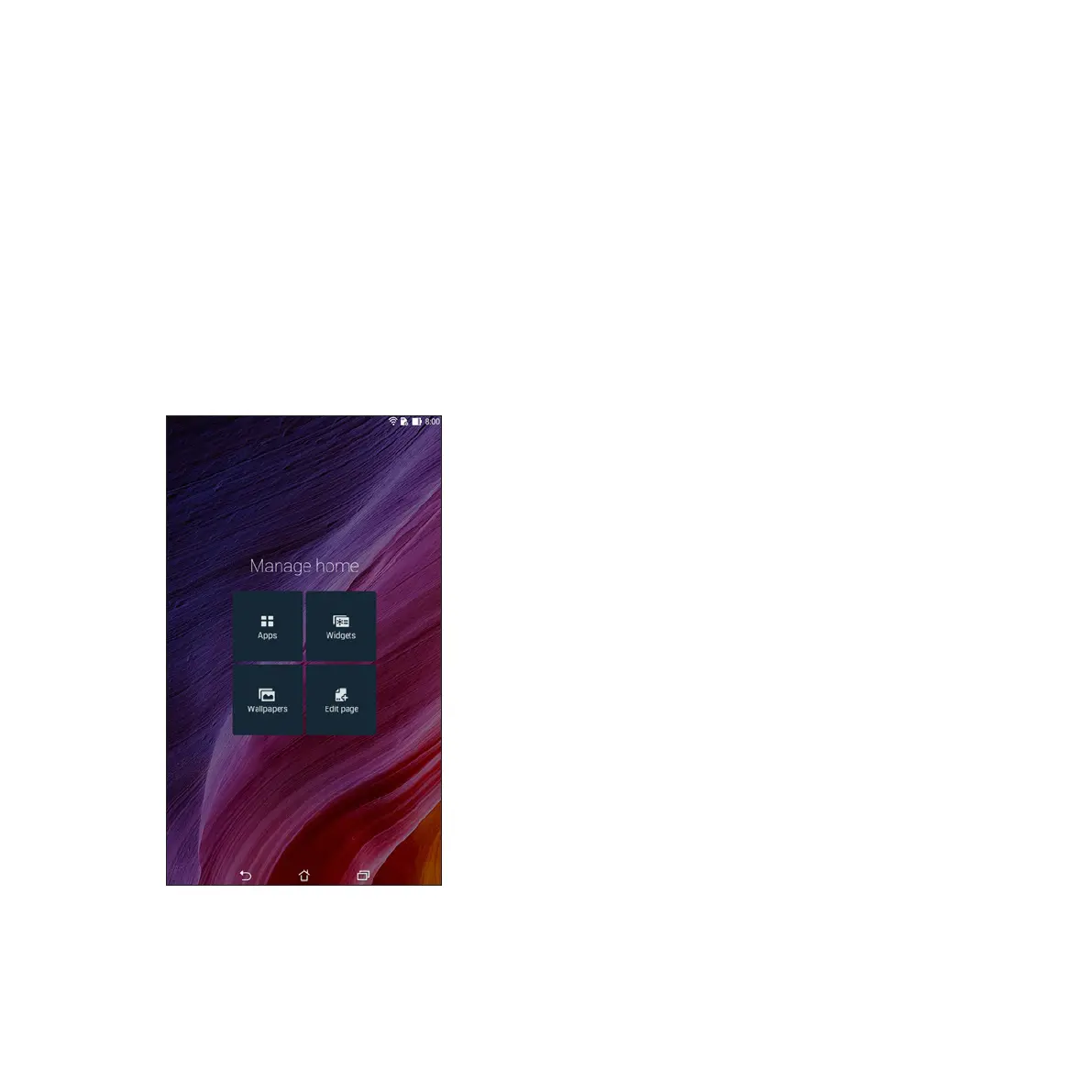 • Toadditemstohome,tapandholdanemptyareaonyourHomescreenandselectanyofthese