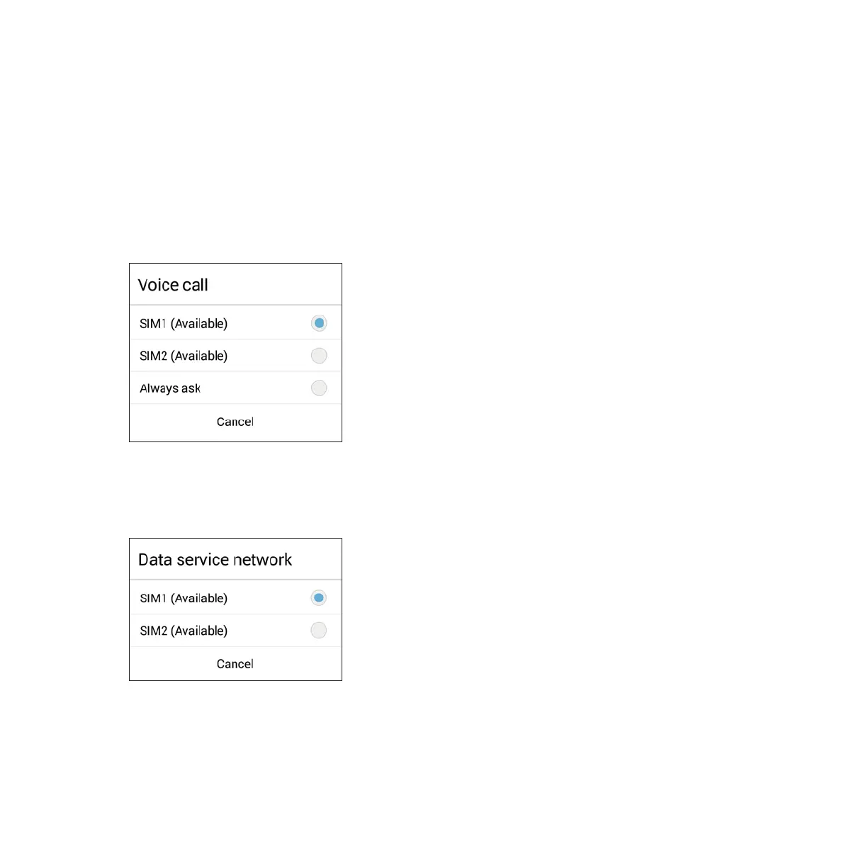 To assign a micro SIM card for data service, tap Data service network then select from SIM1 or SIM2.