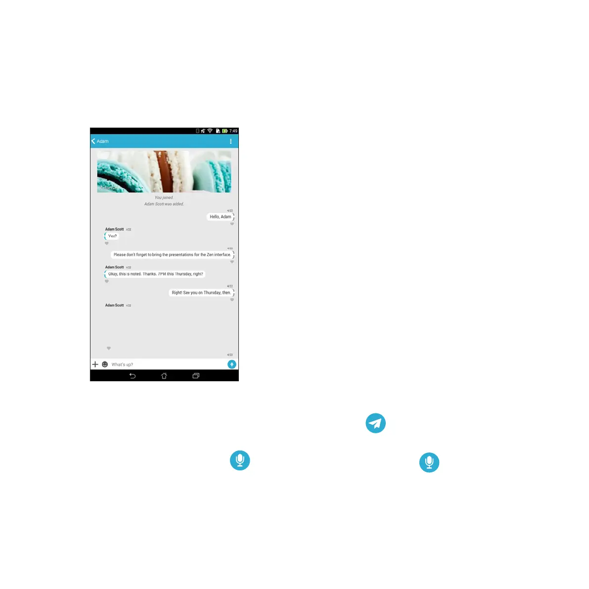 To send a chat message, key in your message in What’s up field then tap .