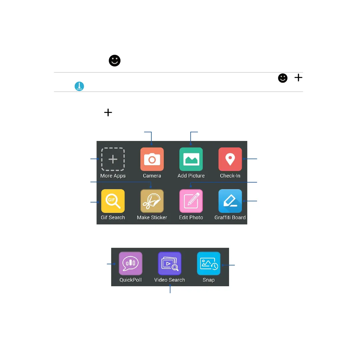 NOTE: You can download more virtual stickers from Sticker Store. To download the virtual stickers, tap >