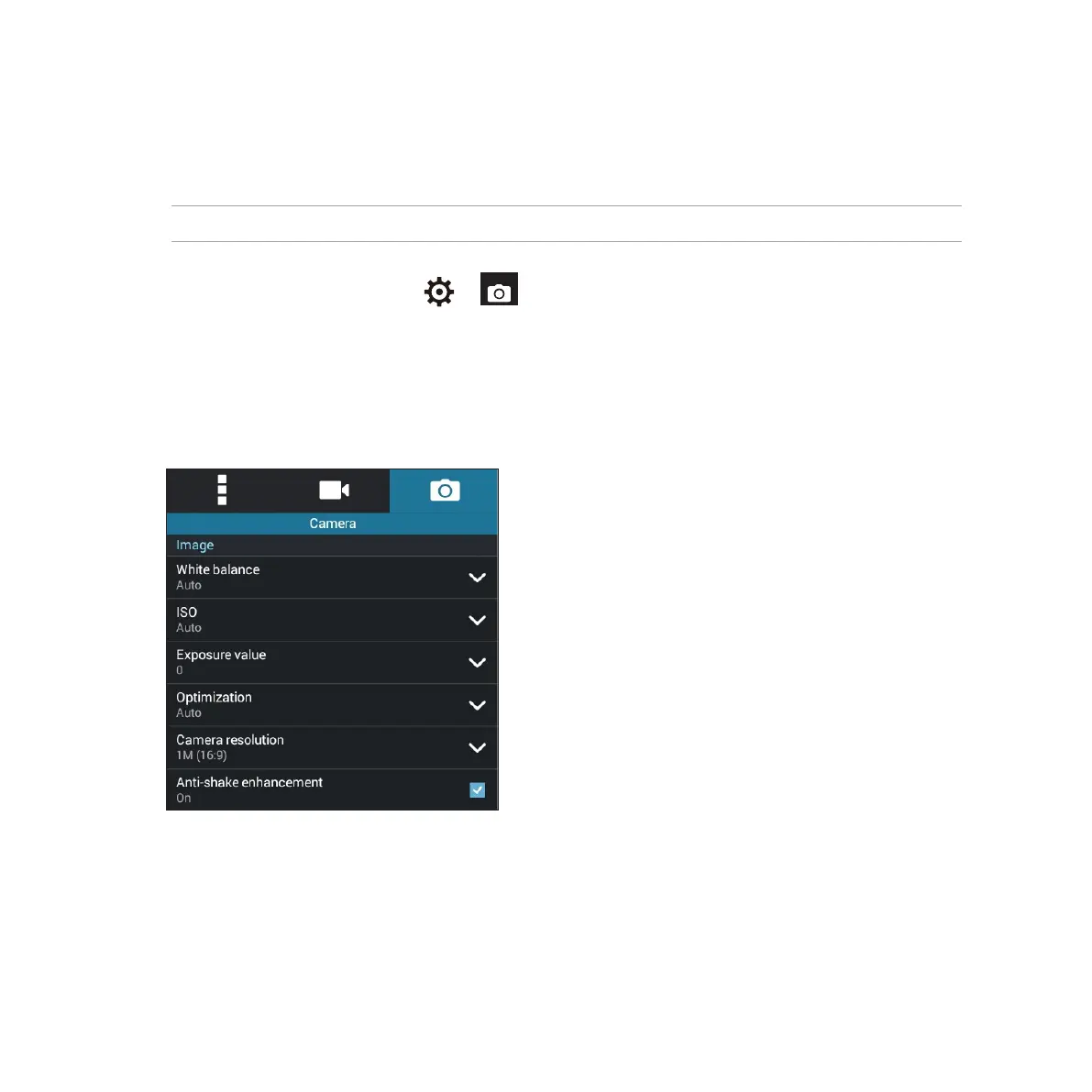 1. On the camera’s home screen, tap > .
