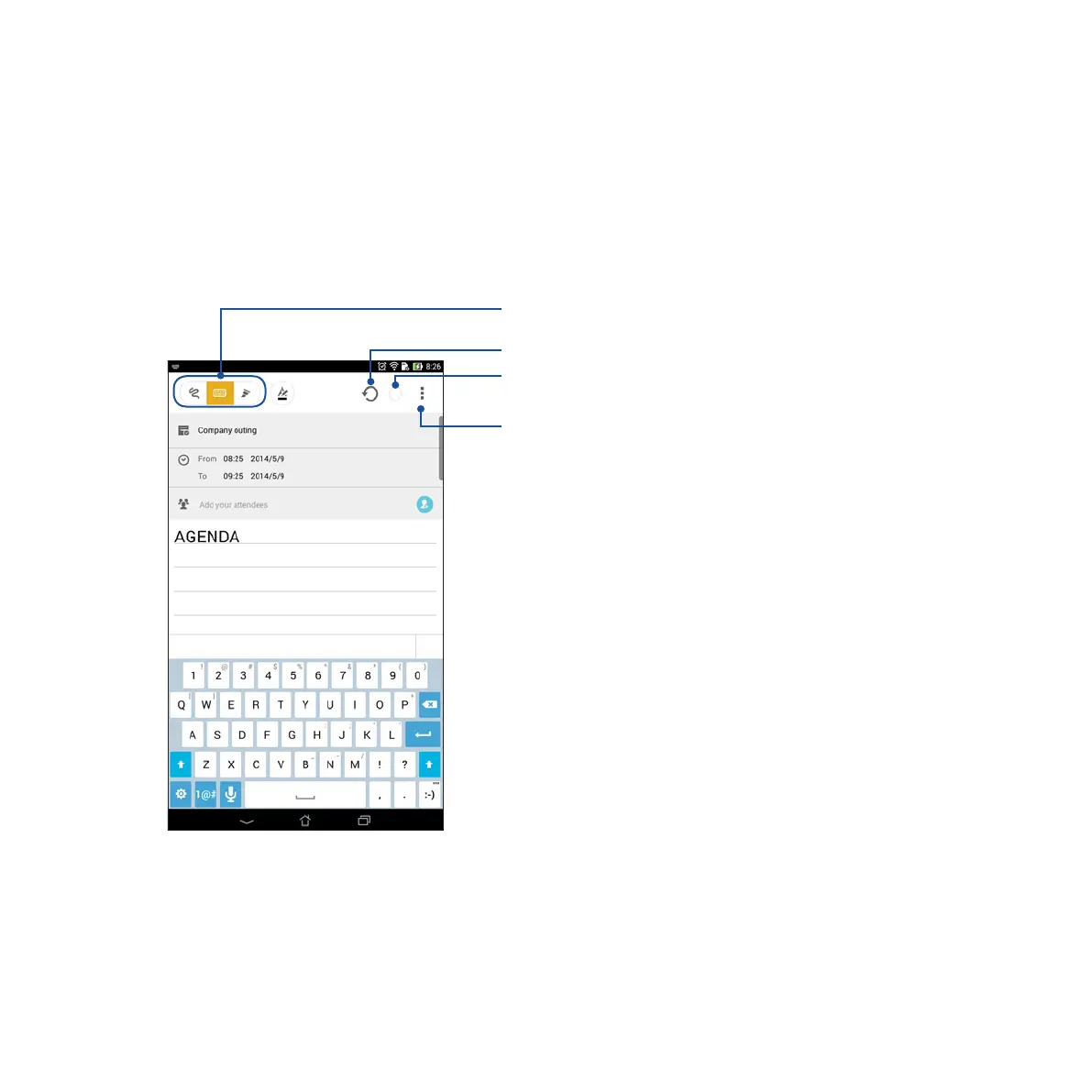 touchscreen. While creating notes, you can also add multimedia files from other apps and share them via