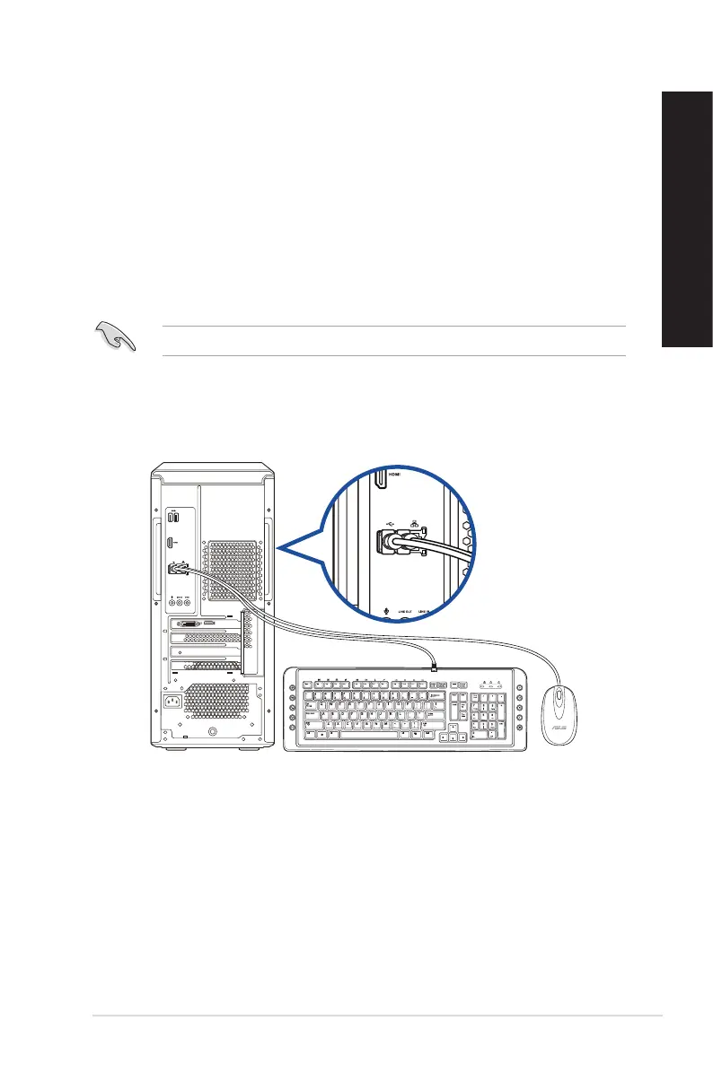 Connect a USB keyboard and a USB mouse to the USB ports on the rear panel of your computer.