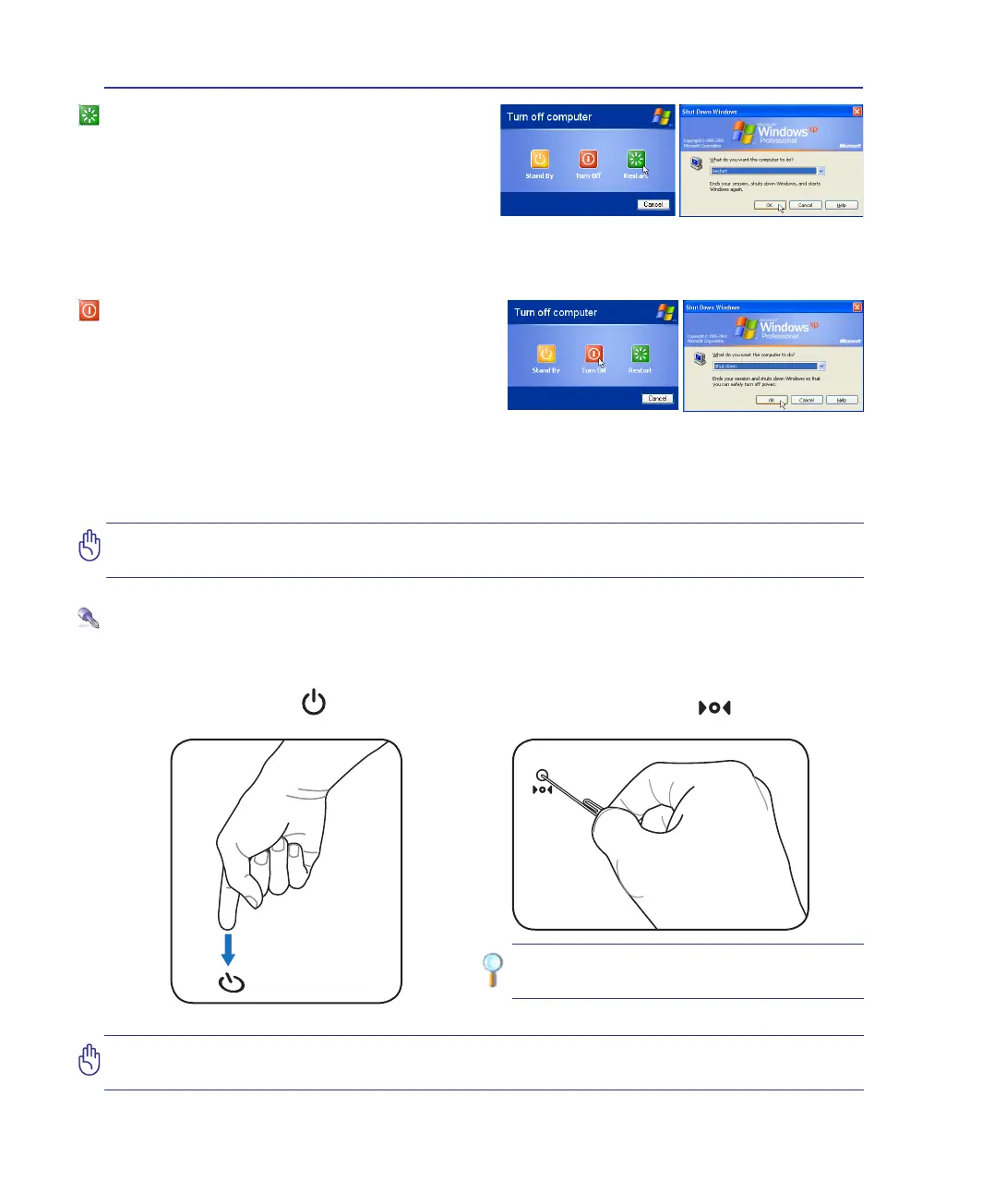 and exit operating systems and then power OFF by holding the power switch for 2 seconds (as opposed
