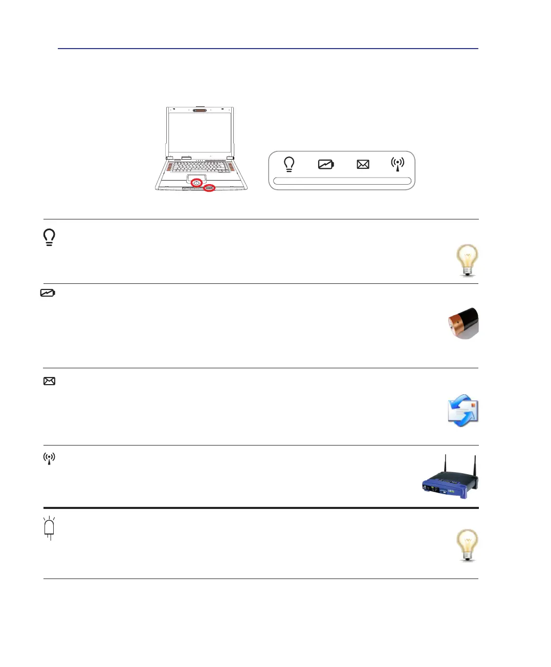 The power indicator lights when the Notebook PC is turned ON and blinks slowly when the Note-