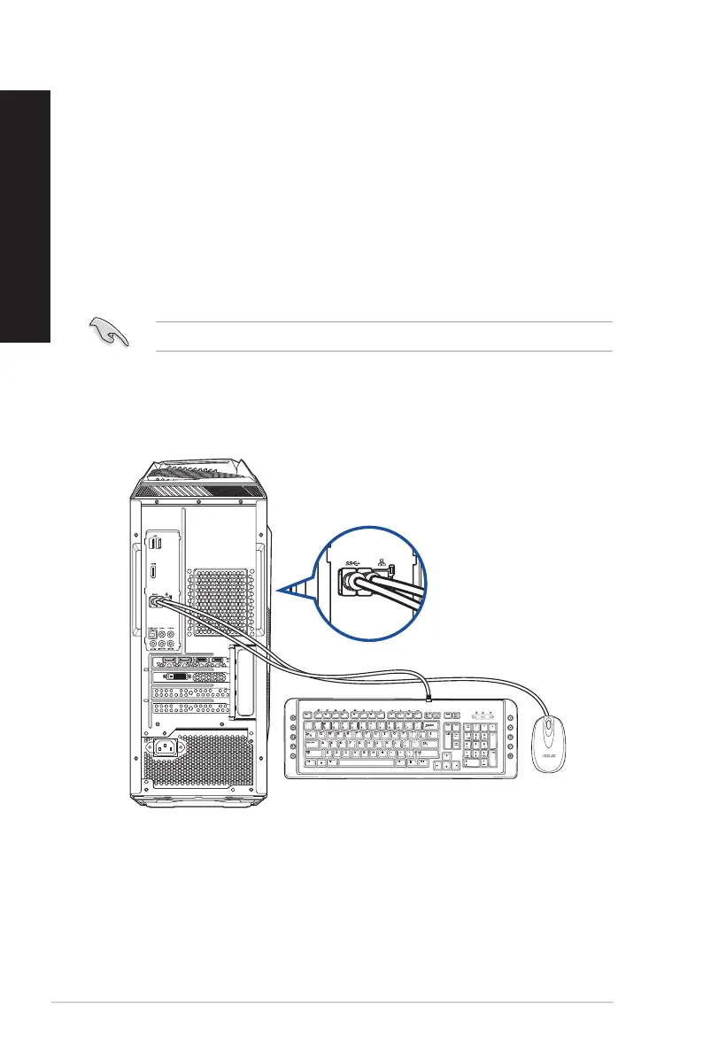 Connect a USB keyboard and a USB mouse to the USB ports on the rear panel of your computer.