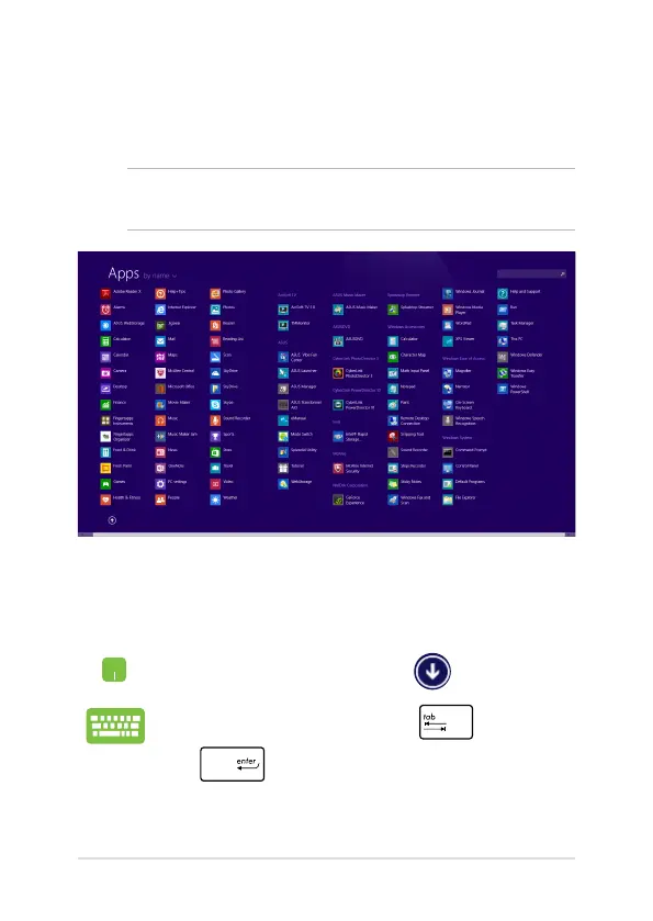 Åbn Apps-skærmen ved at bruge Notebook PC'ens touchpad eller