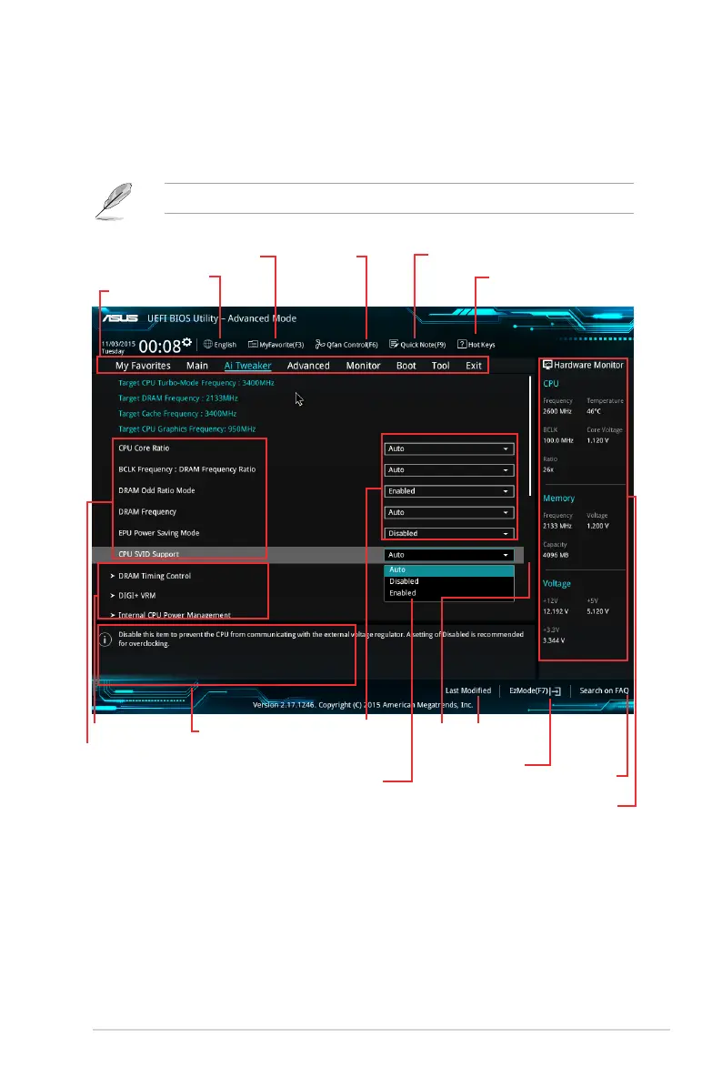 BIOSsettings.ThegurebelowshowsanexampleoftheAdvanced Mode.Refertothe