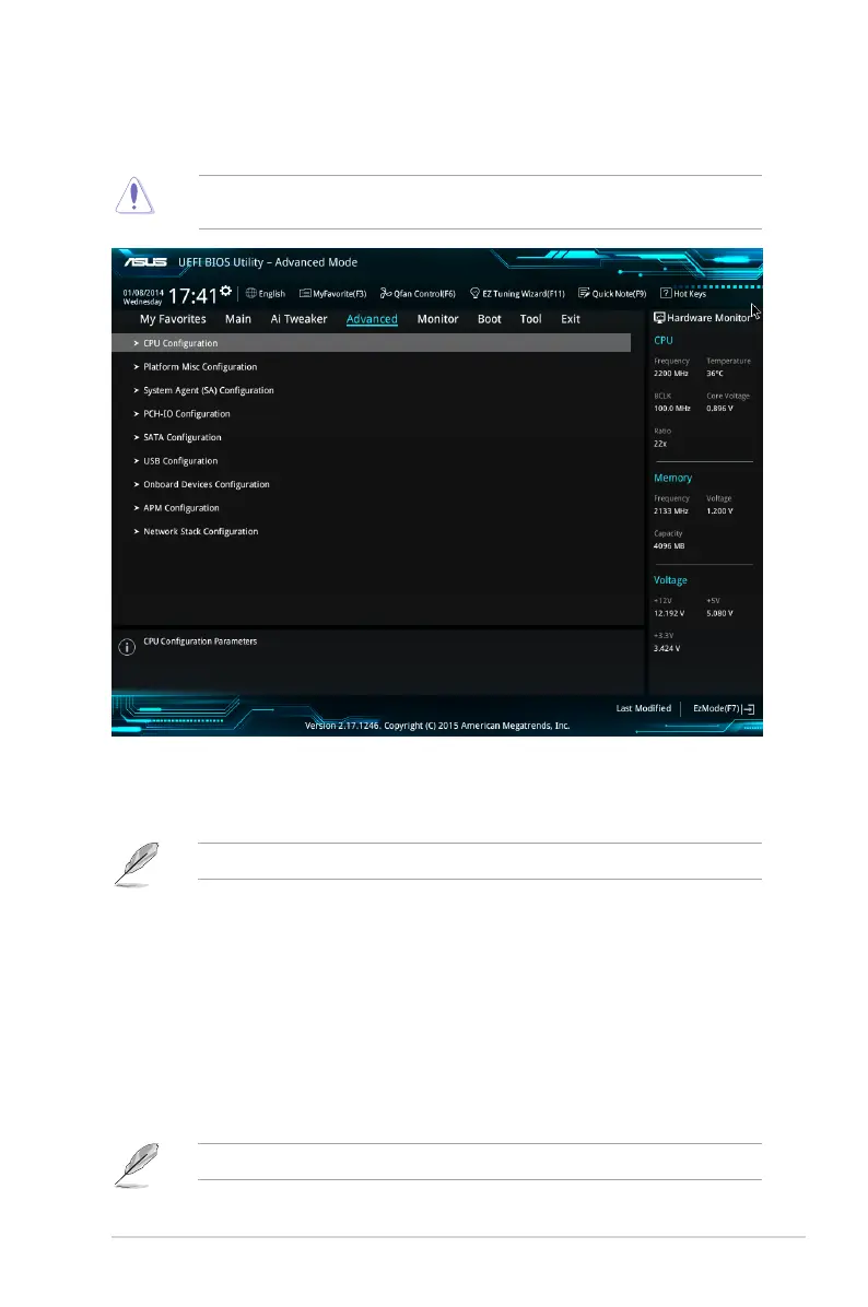 TheAdvancedmenuitemsallowyoutochangethesettingsfortheCPUandothersystem