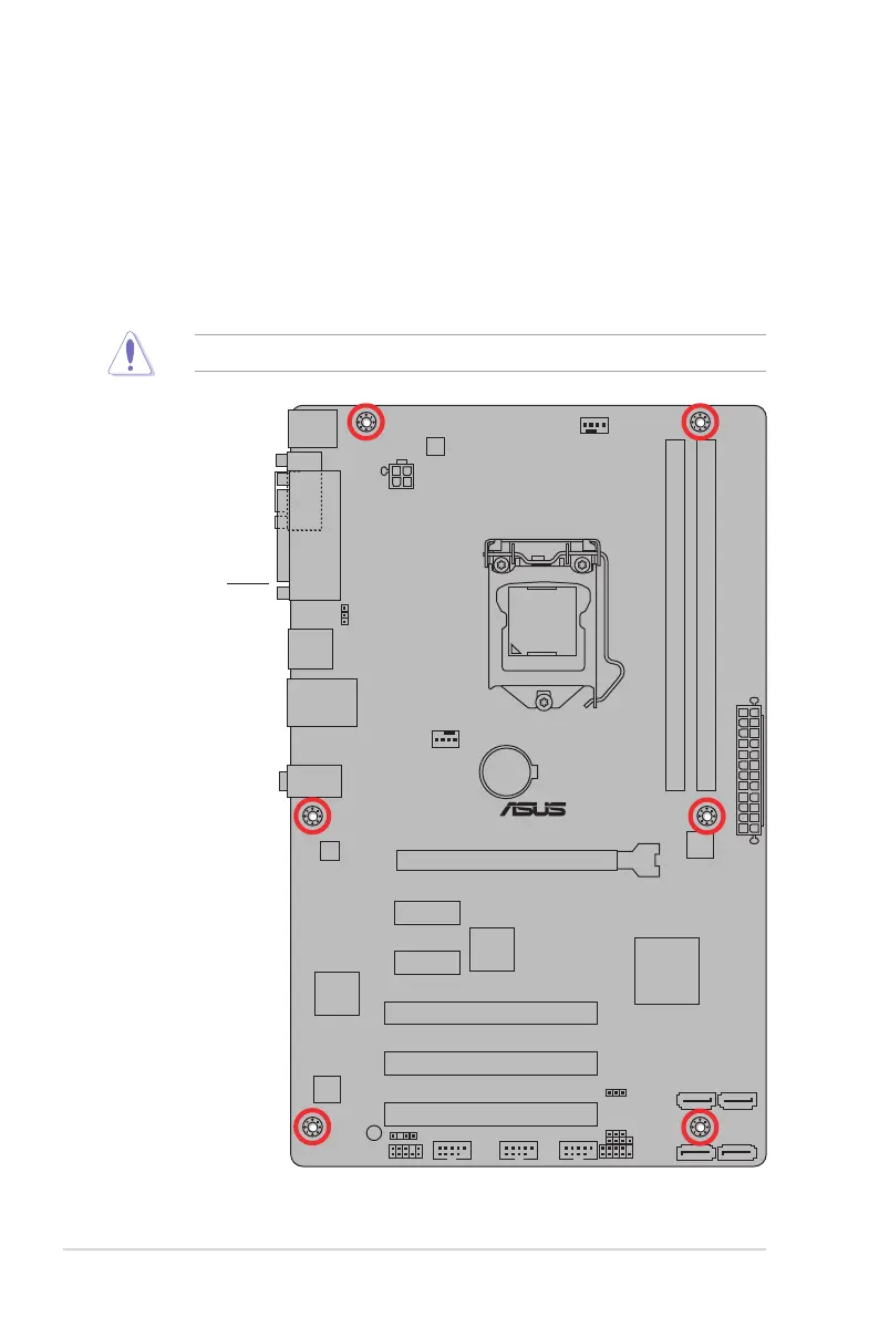 DO NOT overtighten the screws! Doing so can damage the motherboard.