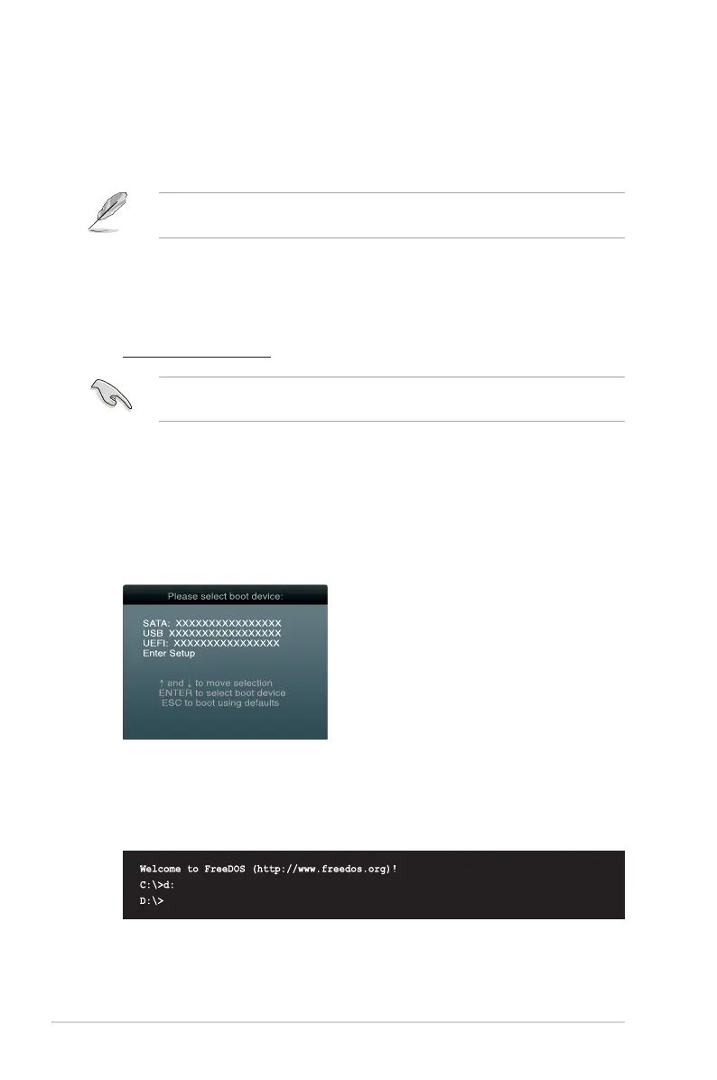 4. At the FreeDOS prompt, type d: and press <Enter> to switch the disk from Drive C