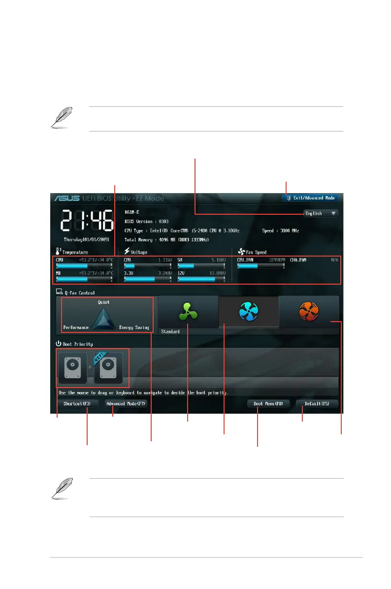 By default, the EZ Mode screen appears when you enter the BIOS setup program. The EZ