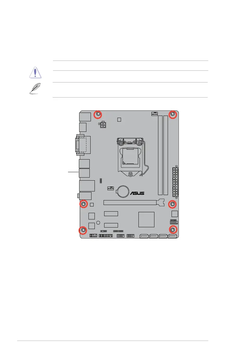 Do not overtighten the screws! Doing so can damage the motherboard.