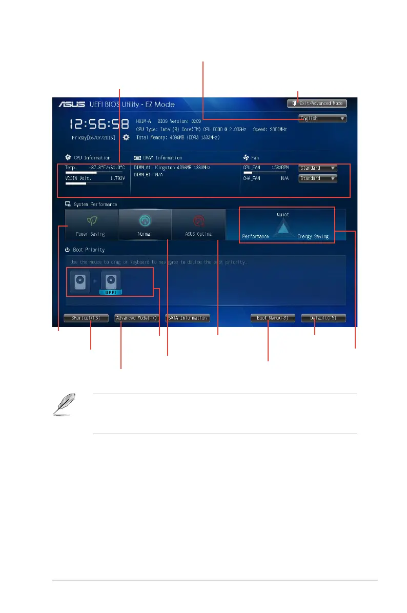 • The boot device options vary depending on the devices you installed to the system.