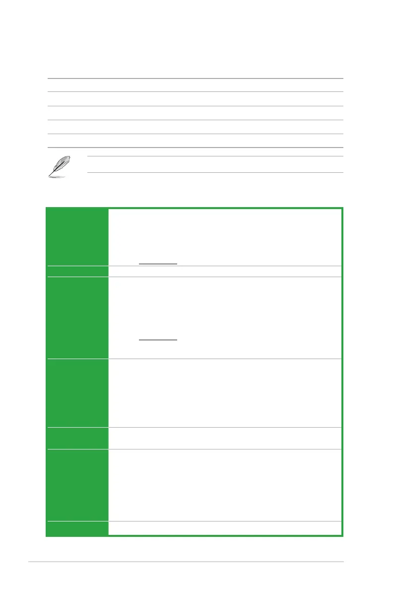 ** Refer to www.asus.com for the latest Memory QVL (Qualied Vendors List).