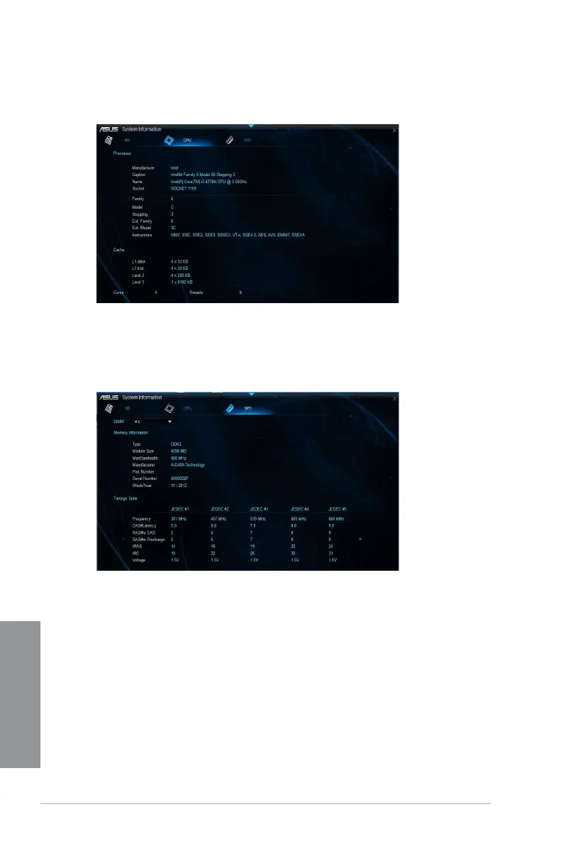 From the System Information screen, click CPU tab to view the processor’s information.