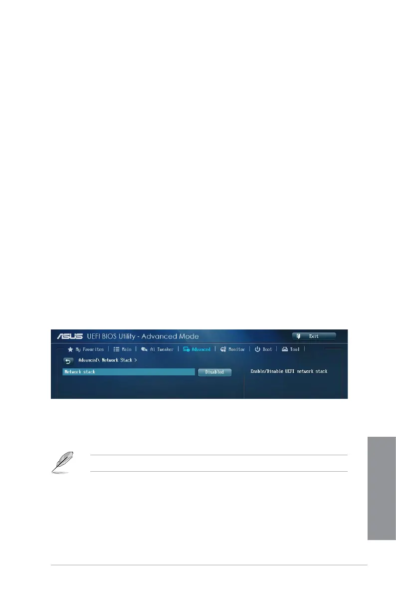 This item allows user to disable or enable the UEFI network stack. Conguration options: