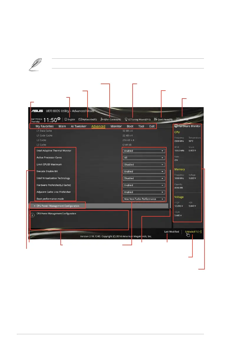 BIOS settings. The gure below shows an example of the Advanced Mode. Refer to the