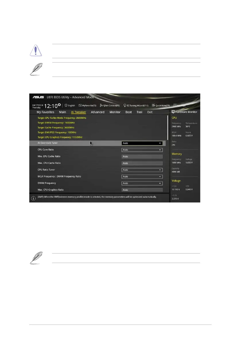 Be cautious when changing the settings of the Ai Tweaker menu items. Incorrect eld