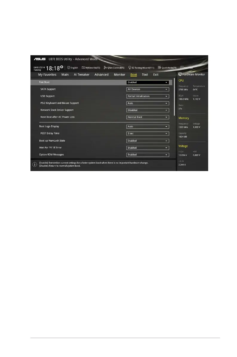 TheBootmenuitemsallowyoutochangethesystembootoptions.