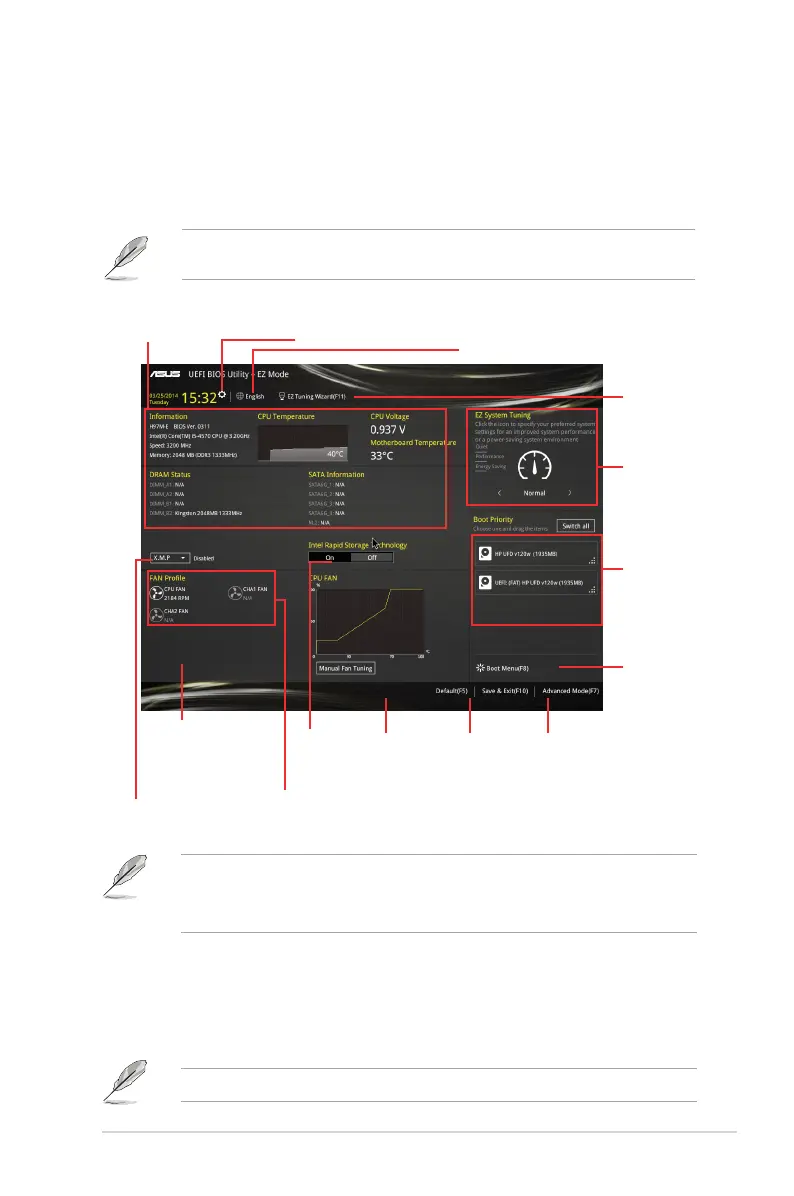 By default, the EZ Mode screen appears when you enter the BIOS setup program. The EZ