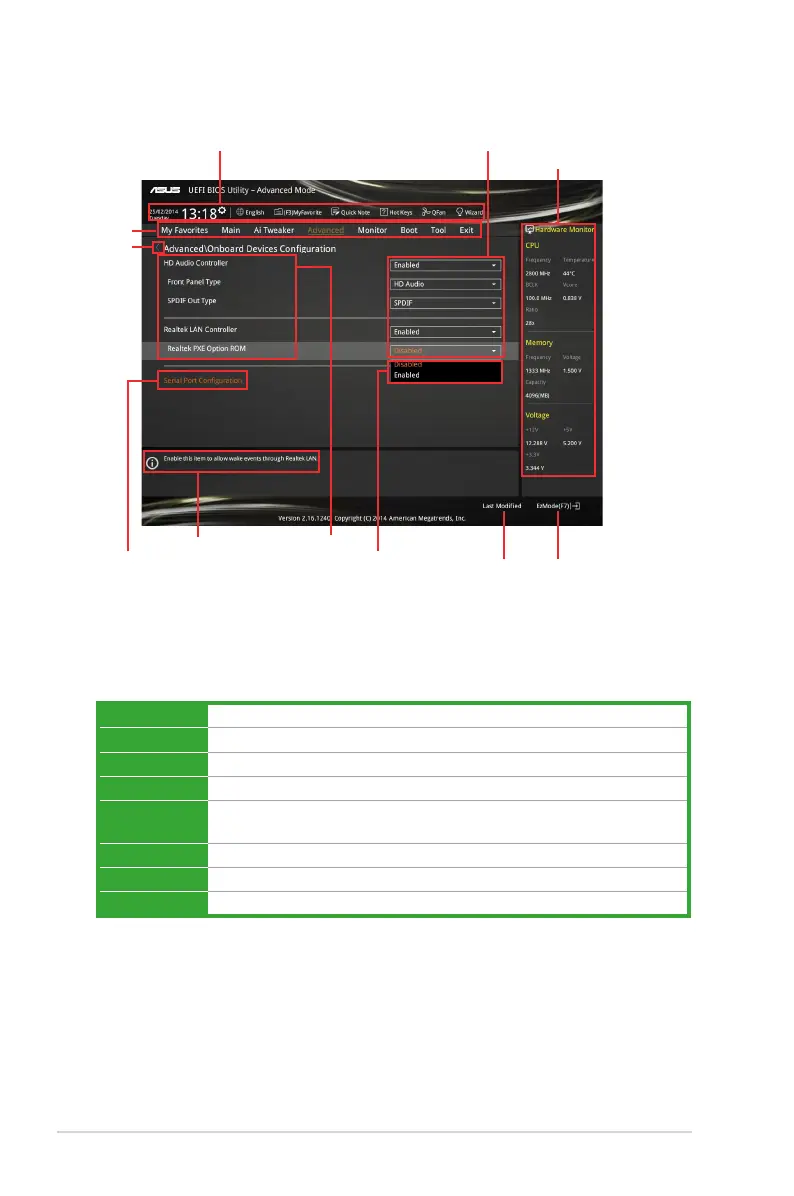 For selecting the exit options and loading default settings
