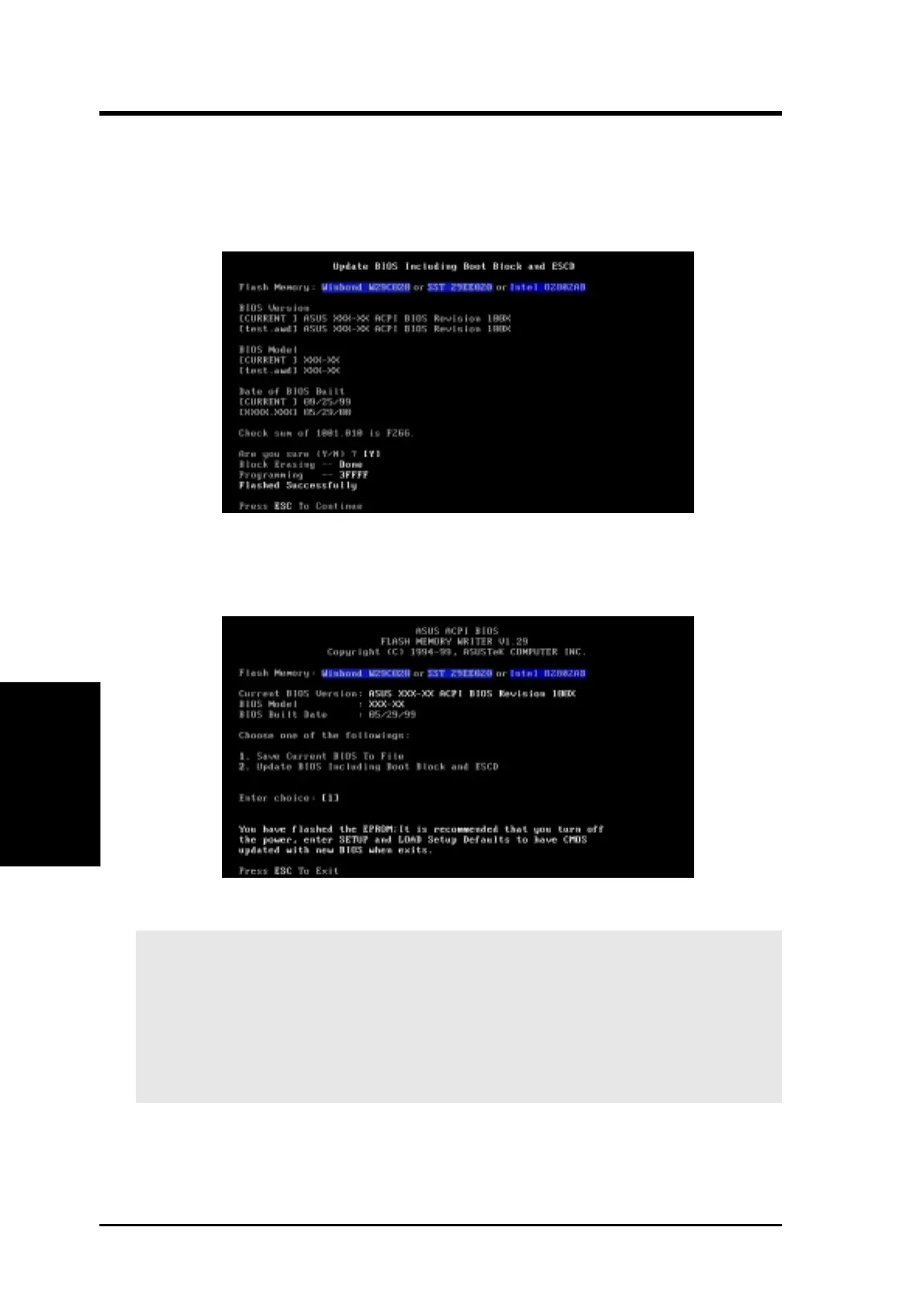 7. The utility starts to program the new BIOS information into the Flash