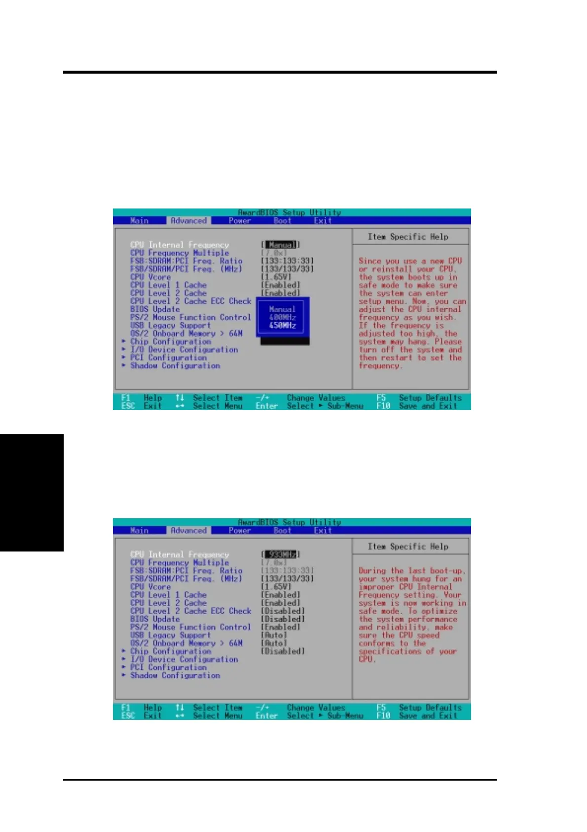 If your system crashes or hangs due to improper frequency settings, power