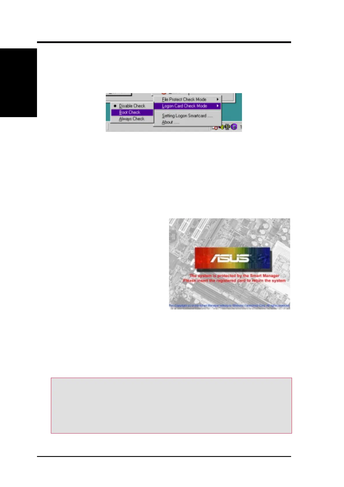 2. Boot Check enables the Smart Manager security system for start up.