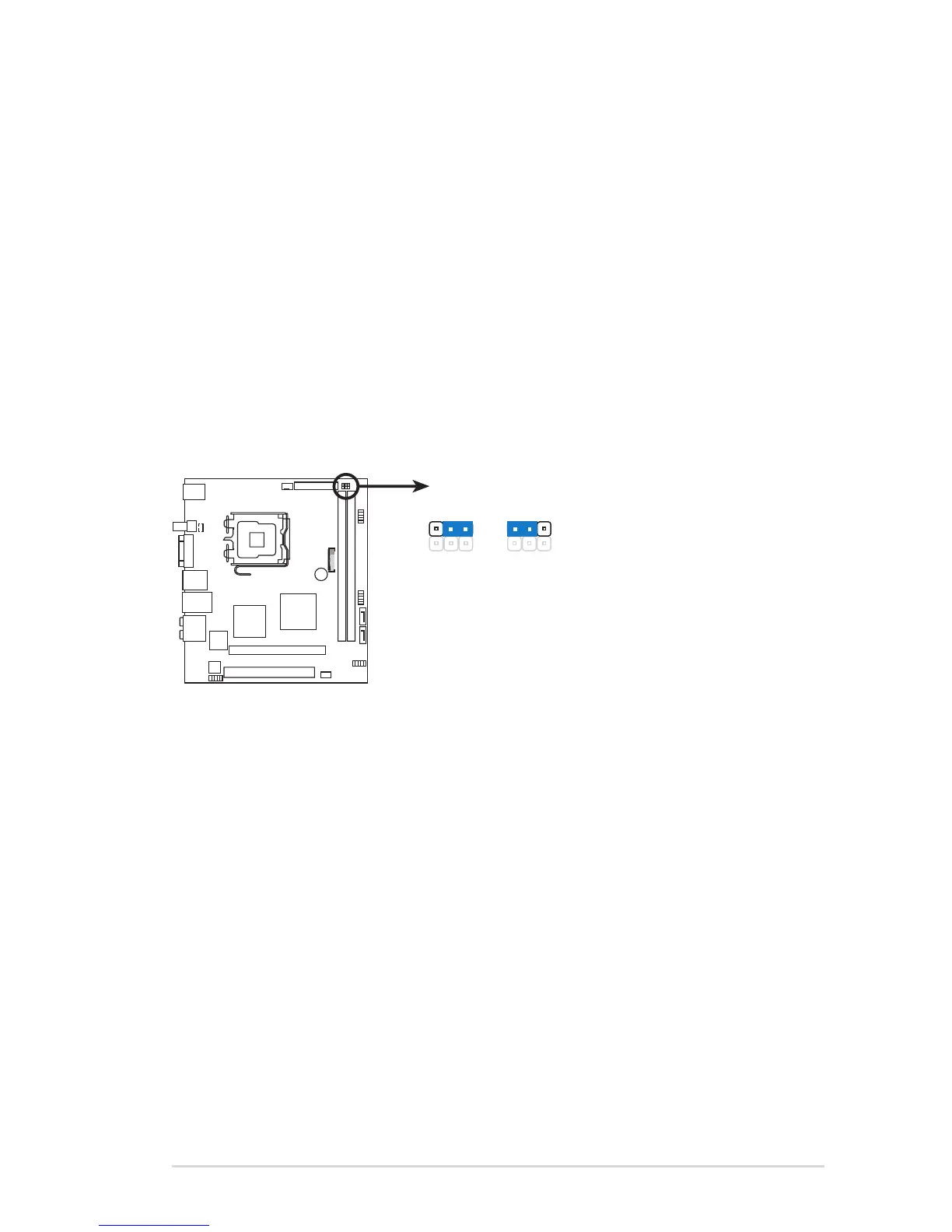 2. Move the jumper cap from pins 2-3 (Normal) to pins 1-2 (Clear