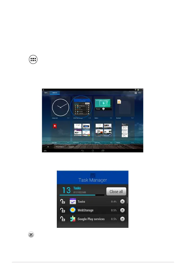including their usages in percentages, on your ASUS Tablet. You can also open