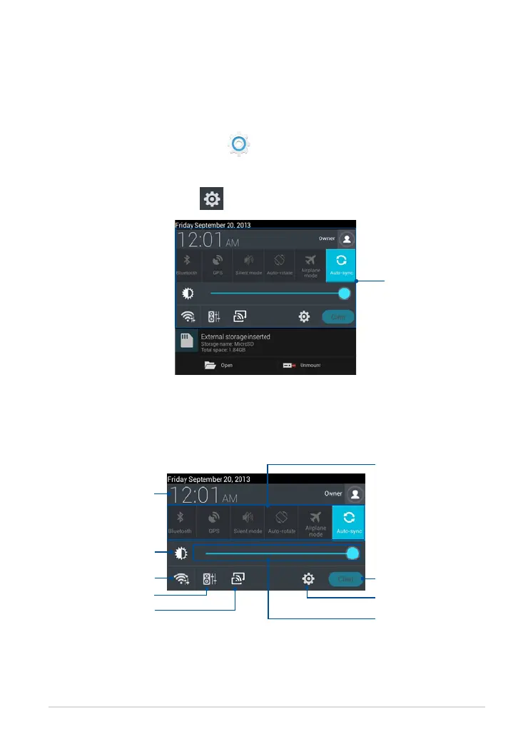 Settings screen allows you to congure the system settings of your ASUS Tablet.
