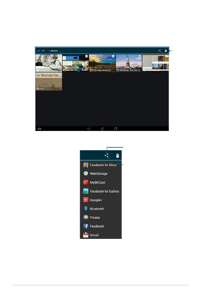 To share an album, tap and hold an album until a tool bar appears on top of the