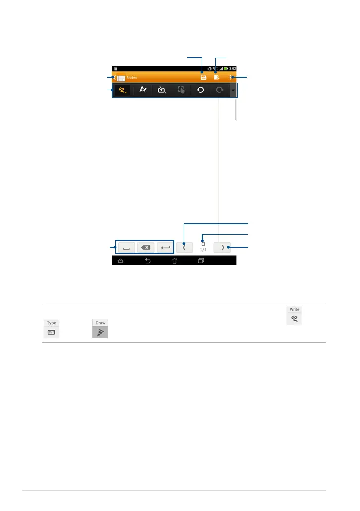 NOTE: The mode settings and notebook tool bar changes when you tap mode,