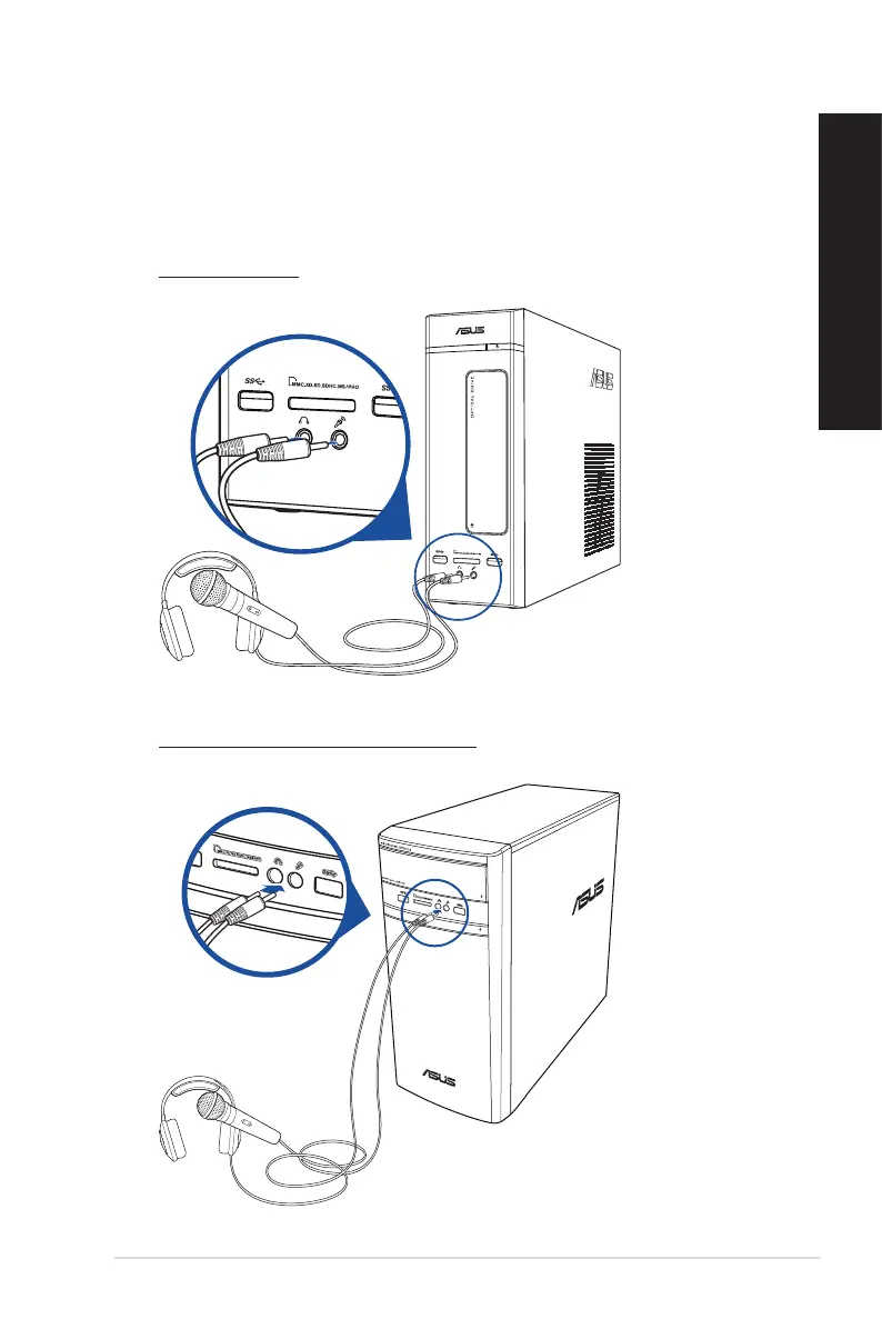 This desktop PC comes with microphone ports and speaker ports on both the front and rear panels.