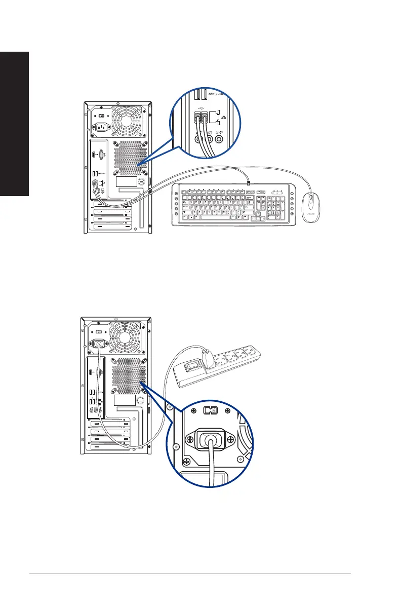 Connect a USB keyboard and a USB mouse to the USB ports on the rear panel of your computer.