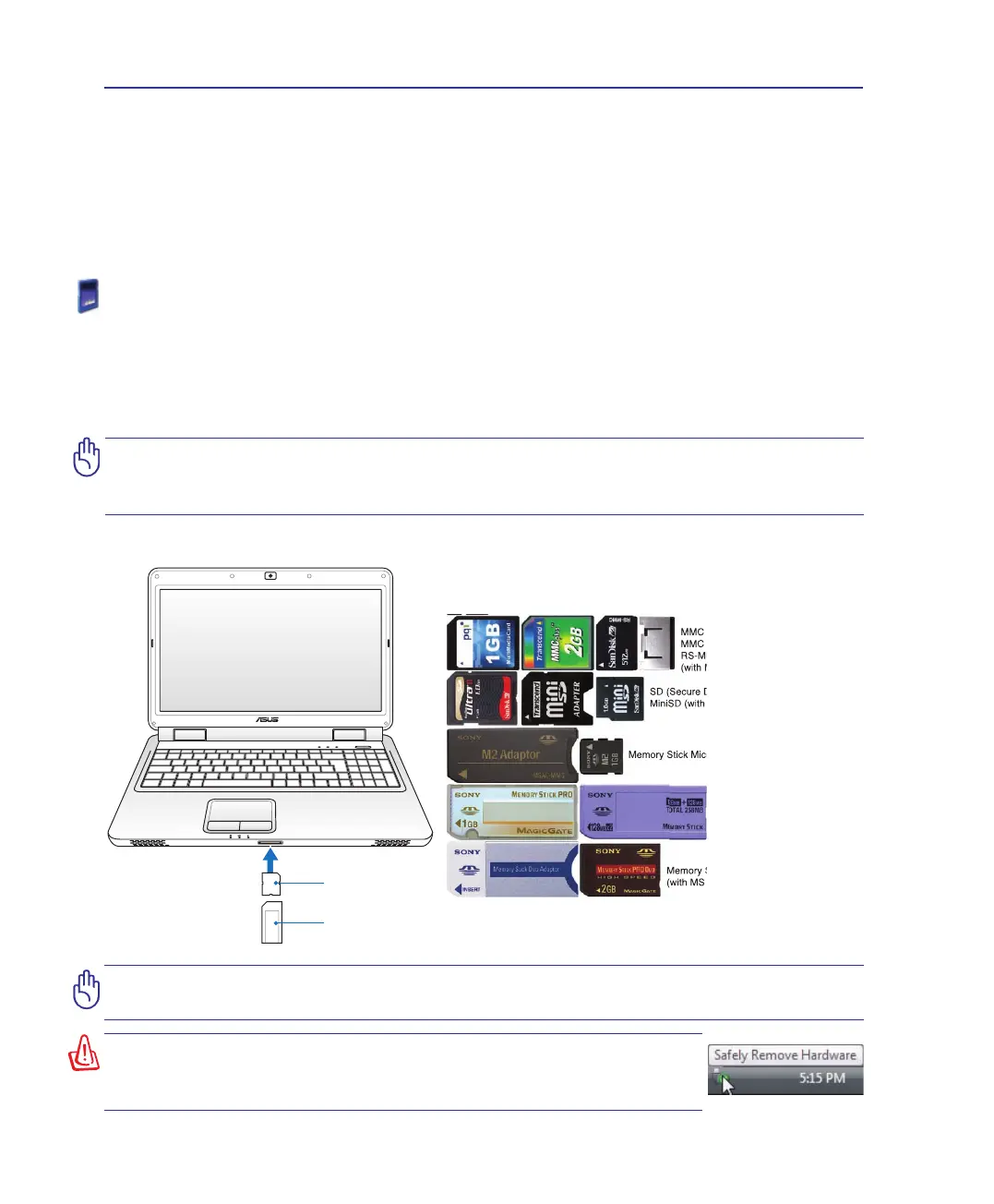 devices such as digital cameras, MP3 players, mobile phones, and PDAs. This Notebook PC has a