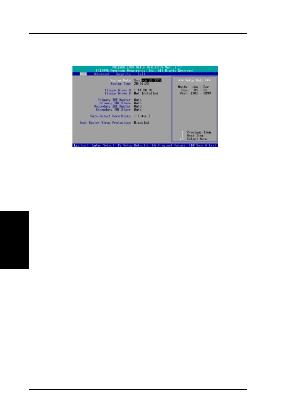 When the Setup program is accessed, the following screen appears: