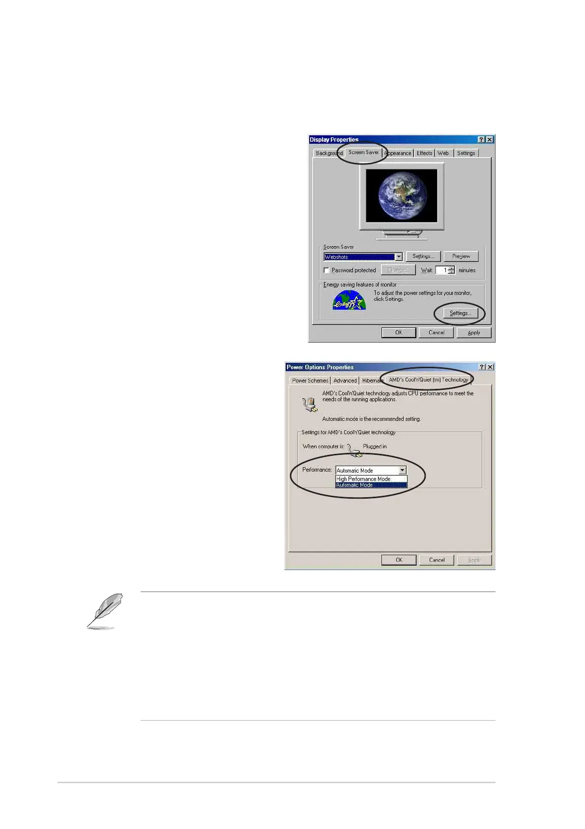 • Make sure to install the AMD Cool ‘n’ Quiet!™ driver and application before