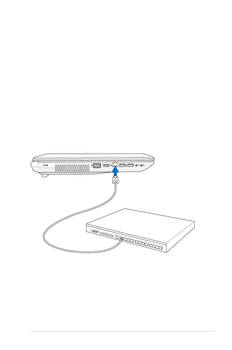 Example of the Notebook PC connected to a Network Hub or Switch