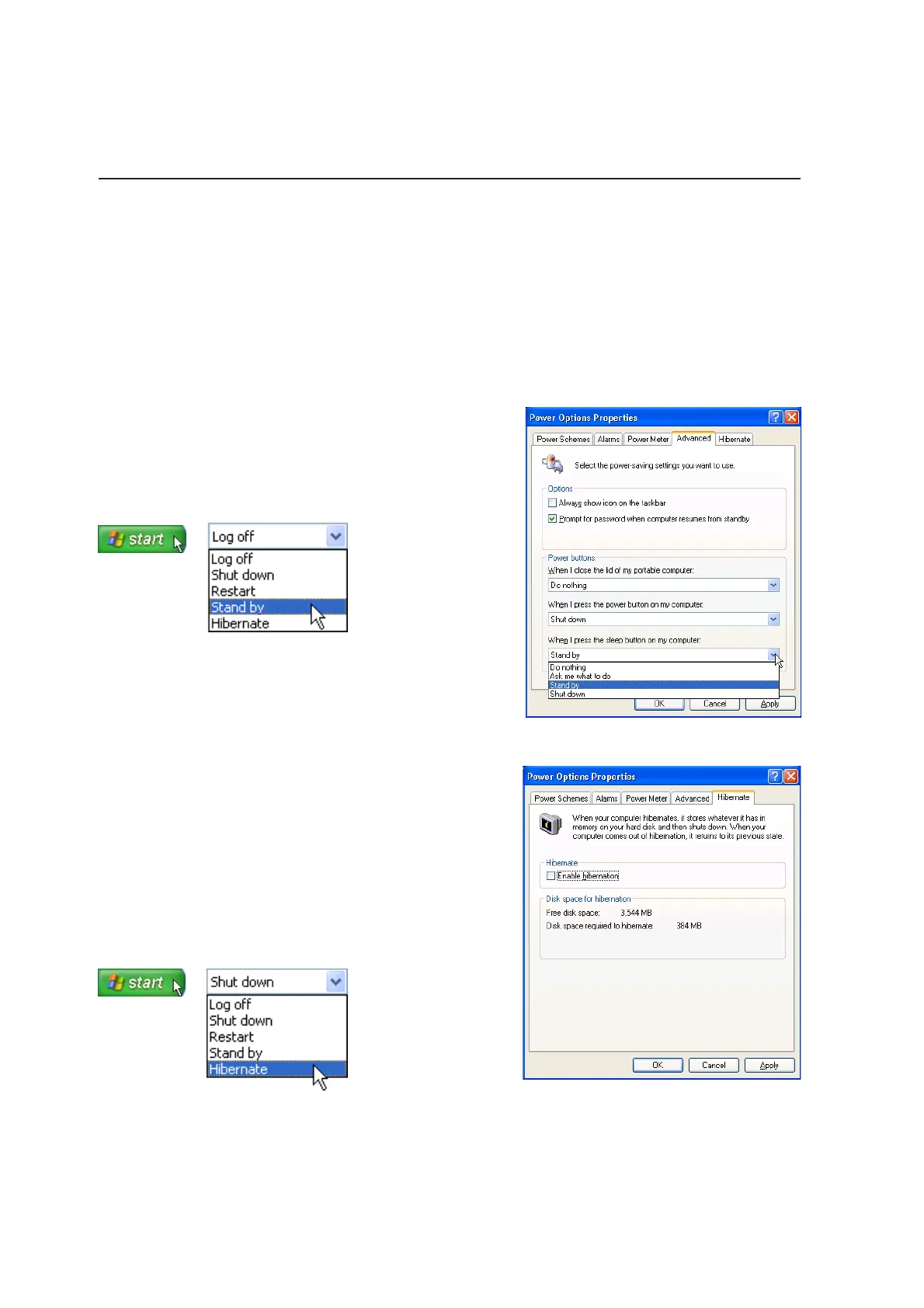 display panel, pressing the power button, or activating sleep mode. “Stand by” and “Hibernate” saves
