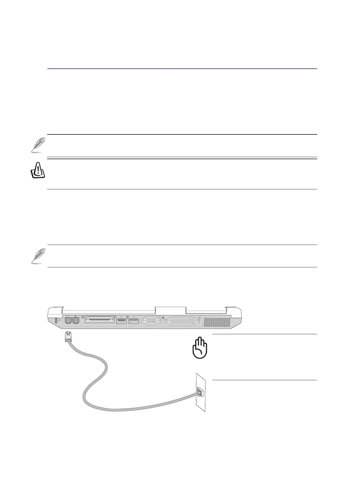 The telephone wire used to connect the Notebook PC’s internal modem should have either two or four